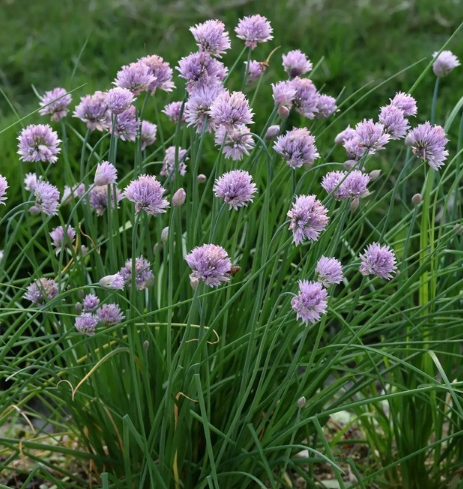 花:圓筒狀的花葶,高15-(70 )80) 厘米,中間以下的葉鞘光滑;總苞2裂,宿存;傘形花序?yàn)榘肭蛐沃两蛐?,有許多密集的花;花梗近等長(zhǎng),1長(zhǎng)于花被片.5-3次,基部沒(méi)有小花苞片;花淡紫色;花被片卵狀披針形到披針形,長(zhǎng)4片-8(10)毫米,寬2-3毫米,等長(zhǎng),有時(shí)外輪稍短,具紫色中脈,先端短尖;花絲等長(zhǎng),等于或略短于花被片,基部連在一起并附著在花被片上結(jié)合部分高約1 mm,內(nèi)輪細(xì)絲分離部分為狹長(zhǎng)三角形,底邊約為外輪底邊寬度的1.外輪錐度的5倍;卵巢呈卵圓形,腹縫基部有小凹蜜孔;花柱伸出花被外;柱頭點(diǎn)狀。