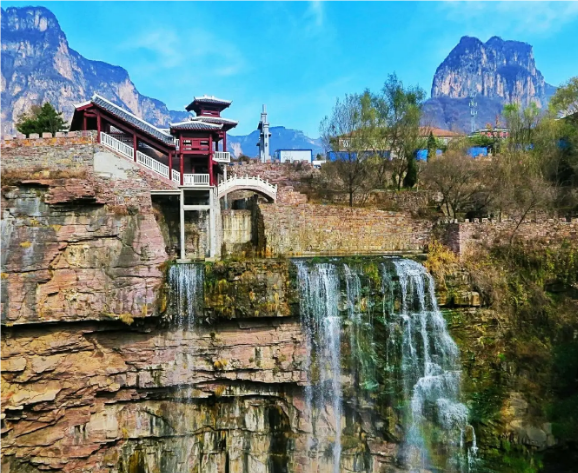 這一景觀在由掛壁公路進(jìn)入錫崖溝后不遠(yuǎn)的地方,西崖村的南端,鏡湖與響水河的連接處?!半p橋”是指鏡湖尾部的幸福橋和幸福橋北面約六七米的黃龍橋,兩橋都是單拱石橋。這里的風(fēng)景可以用“嫵媚”二字來(lái)形容,與游人適才經(jīng)過(guò)的掛壁公路的雄偉剛健正好形成對(duì)比。雙橋好像兩位秀麗的女子,迎接著跋山涉水遠(yuǎn)道而來(lái)的客人,邀請(qǐng)大家在這里流連駐足,休息一下。在碧綠的湖水中,幸福橋投下美麗的倒影,給人一種極其恬靜而溫柔的感覺(jué),仿佛那是一位面帶微笑、脈脈含情的姑娘;黃龍橋邊,則是另一番景象,泉水從石磐上跌宕而下,兩橋之間,滄浪河(新命?;蛎跋炊印保奈鞅泵嫘辈宥鴣?lái),與響水河、鏡湖匯在一處,成為明凈的一泓。北岸上,兩只早已不用的石碾靜靜地陳在那里,幾戶人家,一座小廟,掩映在綠樹(shù)之中,構(gòu)成了一幅“小橋流水人家”的圖畫。當(dāng)煙雨霏霏之時(shí),這里水更秀,橋更美,綠樹(shù)人家,朦朧迷離,有一種北國(guó)江南的韻味。