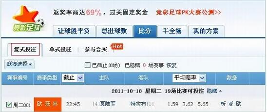 2、比分:即比賽的具體比分結(jié)果就是該玩法的彩果,共有31個彩果類型。