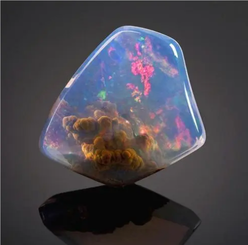 昆士蘭蛋白石(Bouldpal, Queensland):也被稱(chēng)為礫石背蛋白石,這是一種獨(dú)特的蛋白石,只產(chǎn)于澳大利亞昆士蘭州這種蛋白石產(chǎn)于鐵礦與砂巖的夾縫中,開(kāi)采時(shí)通常與鐵礦母巖一起被切掉作為蛋白石的底部。
