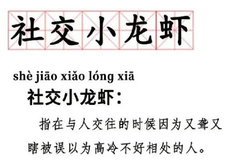 這個社交小龍蝦一般指在社交時候看似高冷的人表現(xiàn)得又“聾”又“瞎”。