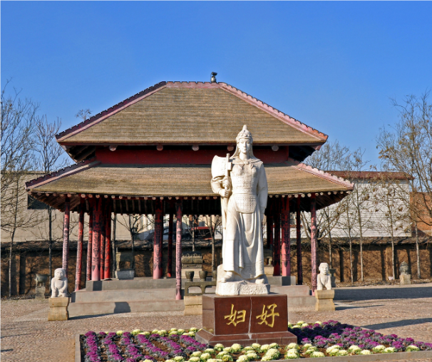 對于婦好墓,采用還原原址原貌的展示方式,真實(shí)再現(xiàn)墓葬形制、甲骨堆積現(xiàn)場,如科學(xué)還原的母辛宗遺骨。在婦好墓大殿前,有一尊后人根據(jù)相關(guān)資料雕刻的婦好漢白玉雕像。