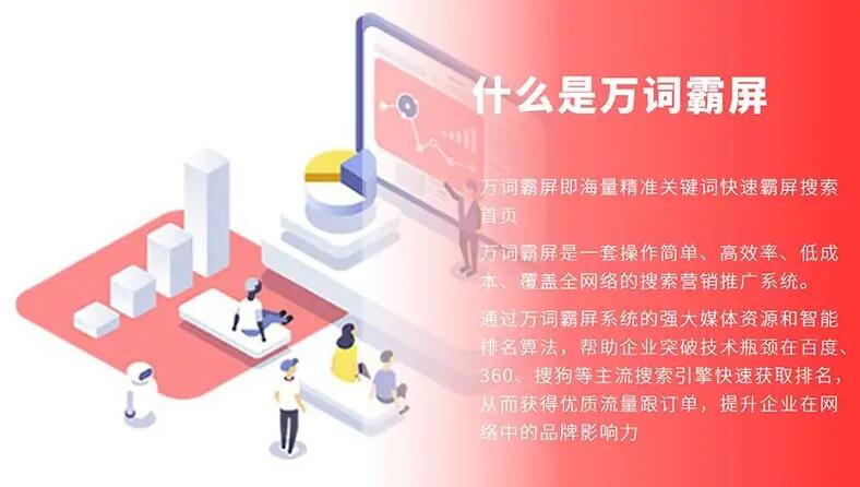 隨著搜索引擎的不斷發(fā)展,搜索引擎對(duì)內(nèi)容的要求越來越高。萬詞霸屏就是將不同的內(nèi)容以圖片的形式展現(xiàn)在搜索引擎中,通過這樣一種方式使網(wǎng)站吸引更多用戶眼球。如果一個(gè)公司是做 SEO或者是網(wǎng)站優(yōu)化,可以考慮在網(wǎng)站上放一些產(chǎn)品圖片或者是視頻資料等供用戶直接觀看。這是非常有效的推廣方式。除了通過圖片推廣方式以外我們也可以使用 SEO工具進(jìn)行萬詞霸屏,通過萬詞霸屏軟件來對(duì)網(wǎng)站優(yōu)化,利用萬詞霸屏軟件將網(wǎng)站收錄在百度等搜索引擎的首頁上,并以此來提高網(wǎng)站廣告客戶的曝光度和增加流量。萬詞霸屏平臺(tái)是國內(nèi)最專業(yè)的搜索引擎優(yōu)化平臺(tái),并且萬詞霸屏平臺(tái)的優(yōu)化功能可以做到1秒鐘迅速獲得關(guān)鍵詞排名以及搜索排名上升。