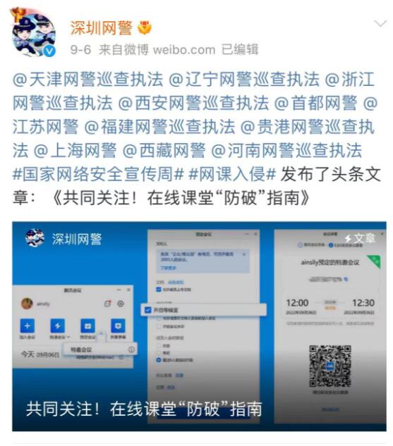 深圳網(wǎng)警轉(zhuǎn)發(fā)《在線課堂“防破”指南》