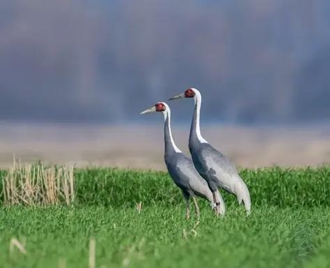白枕鶴主要在干燥草原、森林草原、草沼、濕潤(rùn)的苔草草甸、寬闊河谷的蘆葦叢、湖泊洼地以及多沼澤的高地濕地中筑巢。冬季,它們常出現(xiàn)在淡水湖、農(nóng)田,偶爾也會(huì)出現(xiàn)在沿海平原。