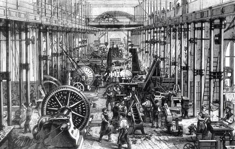 一種說(shuō)法認(rèn)為工業(yè)革命在1750年左右已經(jīng)開(kāi)始,但直到1830年,它還沒(méi)有真正蓬勃地展開(kāi)。大多數(shù)觀點(diǎn)認(rèn)為,工業(yè)革命發(fā)源于英格蘭中部地區(qū)。18世紀(jì)中葉,英國(guó)人瓦特改良蒸汽機(jī)之后,一系列技術(shù)革命引起了從手工勞動(dòng)向動(dòng)力機(jī)器生產(chǎn)轉(zhuǎn)變的重大飛躍。隨后傳播到英格蘭到整個(gè)歐洲大陸,19世紀(jì)傳播到北美地區(qū)。