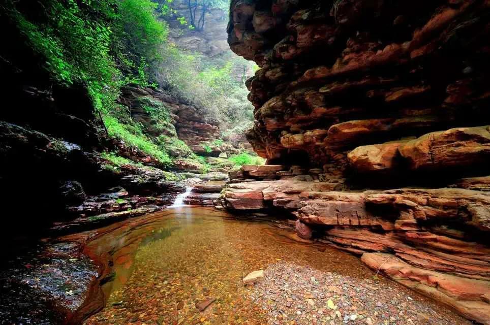景區(qū)內(nèi)的清溪溝水源豐富,尤其在夏季雨量更盛。經(jīng)過(guò)億萬(wàn)年的流水切割,形成了連串坑潭,被稱為“石甕”。這些坑潭一般水深4米,潭口直徑4米,底部長(zhǎng)2米,寬0.8米,形狀如浴盆。專家將其稱為“鍋穴”,亦稱壺穴。鍋穴大小不一,底部多見(jiàn)裸露的紅色巖石,壁面形態(tài)各異,有的裸露,有的長(zhǎng)有植被。