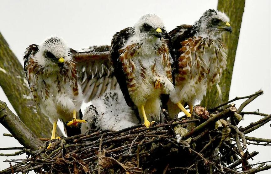 孵化 | 孵化期約30天,雌鳥主要負(fù)責(zé)孵卵和守衛(wèi)。雄鳥主要擔(dān)任警戒和捕食,雄性偶爾在白天孵卵,日孵卵次數(shù)為 6.39 次,日孵卵時(shí)間為 176.90 min。 | 赤腹鷹(孵化) |