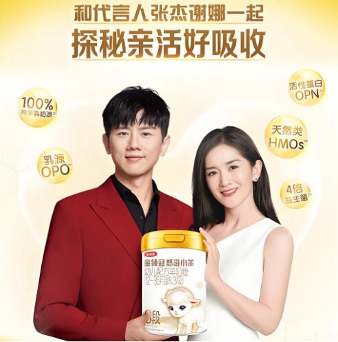 2022 年,伊利金領(lǐng)冠官宣張杰、謝娜共同成為金領(lǐng)冠代言人,借助明星夫妻的影響力,提升品牌知名度和親和力。同年,伊利金領(lǐng)冠塞納牧有機奶粉官宣代言人張晉。同年 11 月 9 日,伊利金領(lǐng)冠正式官宣簽約張杰成為品牌代言人。