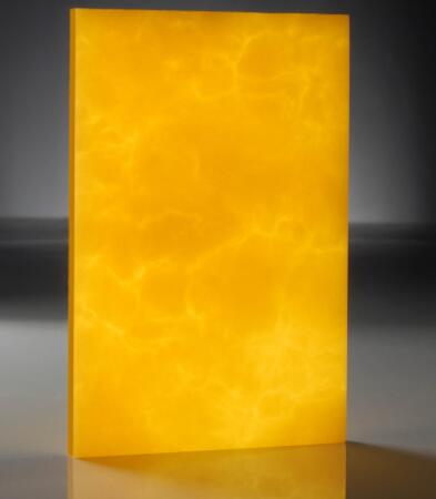 透明石材重量輕(與天然石材相比) ,硬度高,耐油耐臟耐腐蝕。板材變形、抗老化、耐火、無(wú)輻射、抗?jié)B透,可根據(jù)客戶需求進(jìn)行彎曲、無(wú)縫粘接,真正達(dá)到自然狀態(tài)。