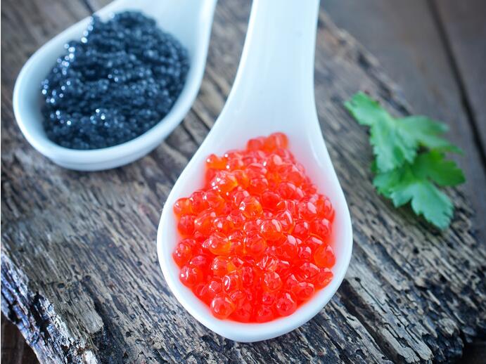 好的魚子醬一定不能有任何損傷,顆粒飽滿光滑無(wú)凹陷,顏色要透明清澈,黑色略呈灰色或棕色;如果它 這是那些大雞蛋中的一個(gè)、亮粉色半透明魚子醬一定是廉價(jià)替代品,比如俄羅斯三文魚魚子醬。
