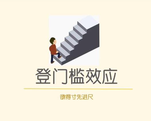 心理學(xué)家認(rèn)為,在一般情況下,人們都不愿接受較高較難的要求,因為它費時費力又難以成功,相反,人們卻樂于接受較小的、較易完成的要求,在實現(xiàn)了較小的要求后,人們才慢慢地接受較大的要求,這就是“登門坎效應(yīng)”對人的影響。明代洪自誠也曾談到這個問題,他在《菜根譚》中說:“攻人之惡勿太嚴(yán),要思其堪受;教人之善勿太高,當(dāng)使人可從。