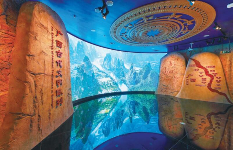 廣西古代文明展位于廣西壯族自治區(qū)博物館二樓1號、2號展廳。本次展覽以時間為線索,以文化為背景,通過“文明曙光”甌風(fēng)駱韻”多元一體”經(jīng)略有方”邊疆鞏固”五個部分展示了舊石器時代至清代廣西波瀾壯闊的歷史發(fā)展進(jìn)程和成就。展覽中挑選的歷史文物包括廣西的古代人類、手斧、貝丘、大石鏟、巖畫、銅鼓、靈渠、巖洞葬、石刻、建筑等具有地域和民族特色的元素。
