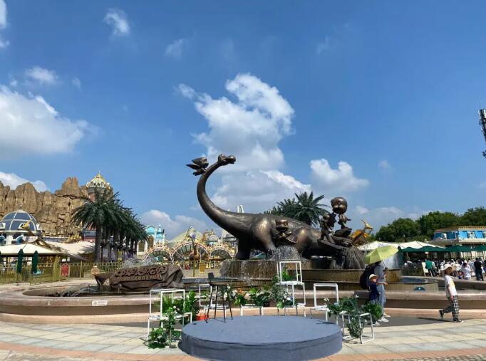 目前,中華恐龍園有七個(gè)主題公園、50多場(chǎng)極限游戲活動(dòng)、以及每天三四十場(chǎng)風(fēng)格各異的主題演出,已經(jīng)形成了一種科普、游玩、表演、食宿、集購(gòu)物于一體的一站式旅游度假區(qū)。