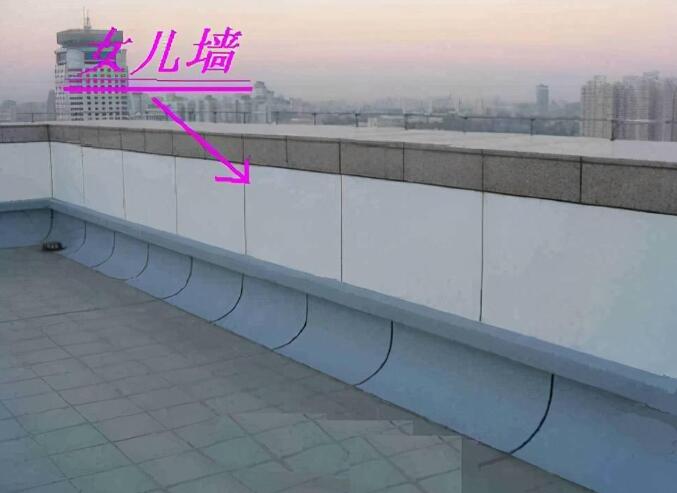 女兒墻由壓頂組成、墻身和排水系統(tǒng)。壓頂一般指女兒墻頂部結(jié)構(gòu),包括陽臺翻邊頂部、窗臺頂部披水板、坡屋頂頂部的防水結(jié)構(gòu)等,是為了避免水流與女兒墻頂部直接接觸而建造的,具有分流水流的作用,有的還裝有防雷裝置保護建筑墻體。墻體范圍是指從壓頂以下到屋頂與外墻連接處的中間部分,分為內(nèi)墻體和外墻體根據(jù)人和建筑物的需要有美觀的效果,同時有防水措施。排水系統(tǒng)主要由檐溝組成、雨水管由兩部分組成,通過天溝收集屋面平面和水,并設(shè)置一定坡度將水引至排水管,從屋面排出。