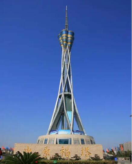 中原福塔,河南省廣播電視發(fā)射塔,位于鄭州市航海東路與機(jī)場(chǎng)高速交叉口東北側(cè),是廣播電視傳輸中心、旅游觀光、名勝展覽、文化娛樂、具有餐飲休閑等多種功能的大型現(xiàn)代化建筑。國家AAAA級(jí)風(fēng)景名勝區(qū)。2006年12月27日奠基,2009年10月竣工。該塔占地141畝,全鋼結(jié)構(gòu),總高388米,共101層,分為塔座、塔身、塔樓、桅桿四部分,建筑面積5.8萬平方米,總投資6.2億元人民幣。