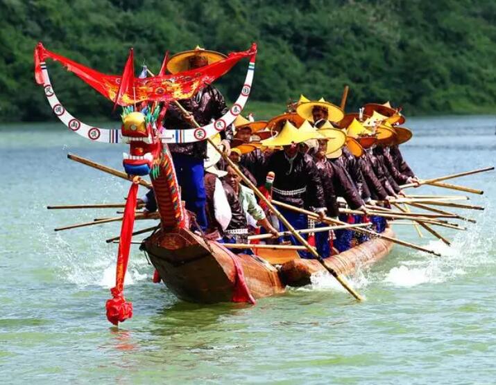 每年農(nóng)歷五月、5月24日至27日,貴州省黔東南州施濱清水河流域施洞地區(qū)舉行傳統(tǒng)端午節(jié)該節(jié)日在村莊舉行,儀式和程序復(fù)雜多樣,主要是祭祀。每個(gè)獨(dú)木舟龍舟都有一個(gè)鼓面、鑼手、撐篙手、理事、艄公、橈手等選手。他們有自己的職責(zé),不同的服裝和不同的節(jié)日“龍”樹(shù)、砍“龍”樹(shù)、造龍舟、出龍儀式、取水儀式、接龍、賽龍舟等一系列活動(dòng)。因?yàn)槊缱迦税妖堉郾荣惖捻樌M(jìn)行視為來(lái)年豐收的開(kāi)始,所以在祭祀過(guò)程中有嚴(yán)格的禁忌,這是苗族人的一種心理表達(dá) 對(duì)龍神的敬畏和崇高感。