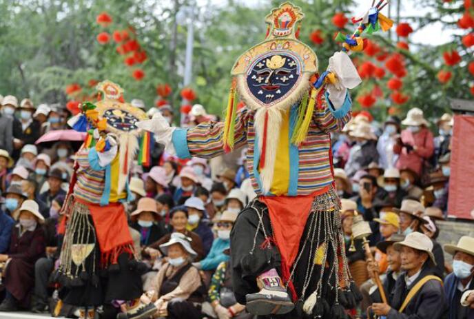 藏戲以其獨(dú)特的舞蹈而聞名、音樂、以歌詞和歌劇形式聞名。它融合了舞蹈、音樂、戲劇和視覺藝術(shù)形成了獨(dú)特的藝術(shù)風(fēng)格。藏戲表演可以通過精彩的表演和音樂給觀眾帶來美的享受和審美體驗(yàn)。