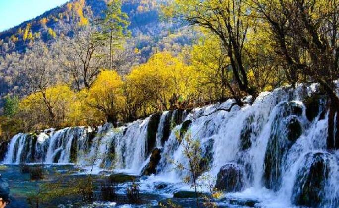 樹正瀑布位于樹正寨子前的公路旁它是進(jìn)入九寨溝時(shí)看到的第一個(gè)瀑布,也是九寨溝四大瀑布中最小的一個(gè)。它的海拔高度為2295米,是由不知名的海水沿著湖堤奔流而成,被水中的樹木分成數(shù)千個(gè)水束,匯集在樹正瀑布的頂部。瀑布呈向前突出的弧形,水流多級(jí)下降,由許多瀑布首尾相連而成。堤岸上有高原特有的灌木,扎根于水底,多年來受流水沖擊而不倒不爛,形成了一個(gè)特殊的植物群落。