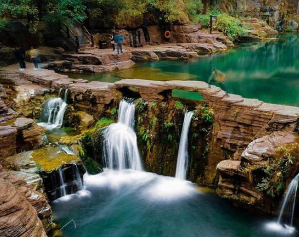景區(qū)內(nèi)有豐富的水資源和瀑布、有許多具有多樣性的水庫、靈動、秀麗的水文景觀。四季水流不斷,尤其是雨季,各種瀑布遍布山谷。每年650毫米的豐富降水沿著懸崖的縫隙慢慢滲透,涓涓細(xì)流,匯成許多常年保持流動的溪流。八里溝瀑布落差158米,在全國旅游資源調(diào)查中被評為五級旅游資源單體,享有“中原第一瀑”的美譽(yù)。這個山谷充滿了奇怪的山峰和美麗的水域瀑布和溪流、潭瀑相連。