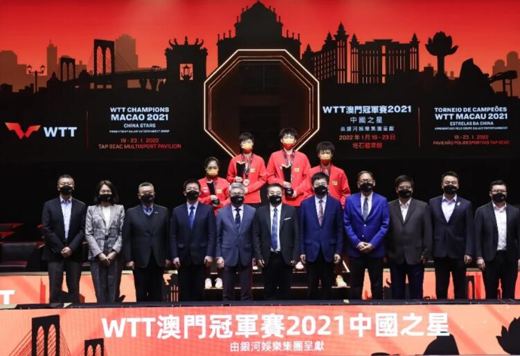 “WTT 澳門冠軍賽2021中國之星”于2022年1月19日至23日在澳門塔石體育館舉行。 王楚欽獲得男單冠軍,王曼昱獲得女單冠軍,許昕/劉詩雯奪得混雙冠軍。